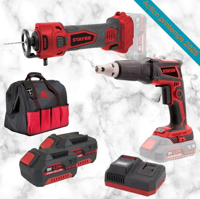 Batterie STAYER Li-ion HGH-TECH, L20 avec protection contre la surcharge, la décharge de la batterie, la surchauffe et les courts-circuits. Indicateur de charge LED.
